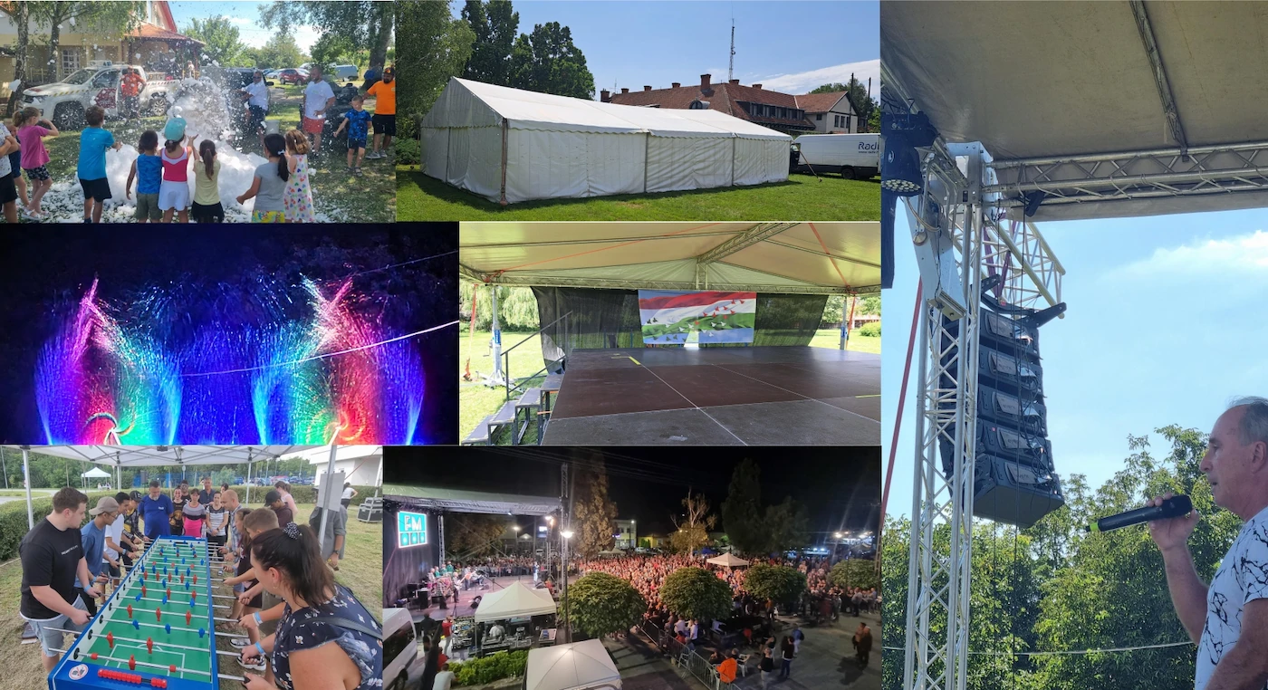 Vittünk sok helyre sátrakat, színpadot, fedést, jobbnál jobb technikát, játékokat, személyzetet és jó szót!